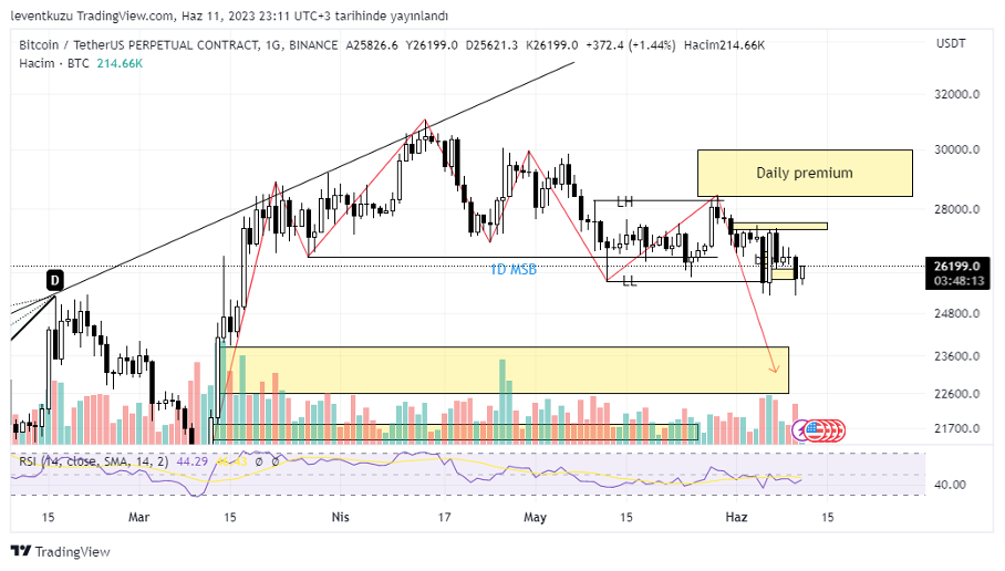 The market structure remains bearish as the previous weeks. The price tested the daily premium zone just with a wick. LL level was slightly broken with a candle but it is not apparent on the daily chart. As we had sharp downward price movements this week, it is not easily detected on daily. Lower time frames can depict better short term movements. On the daily chart $22,500 is the place to be filled to ensure the closure of imbalance. Also, discrete liquidity heat maps show liquidation areas around $22,000 level.