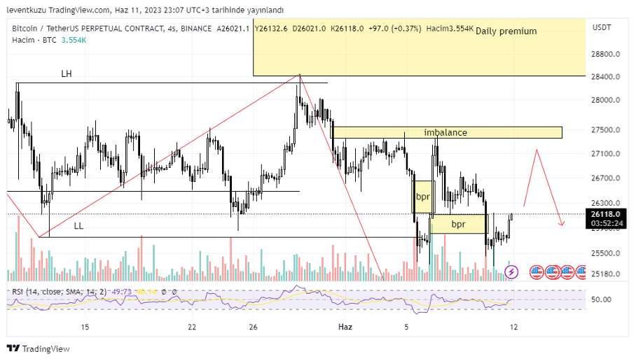 The most remarkable price movement on 1H time frame was bpr. After the first occurrence of bpr, we expected the rise but the candle still included imbalance itself. Therefore, the bpr remained with the third candle including imbalance. The current expectation is to fill the bpr level with shallow descending candles and then move the price upwards.