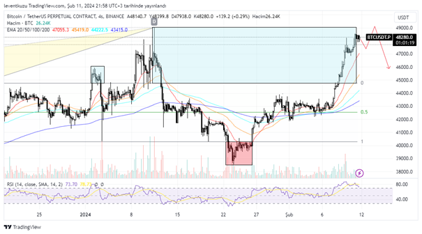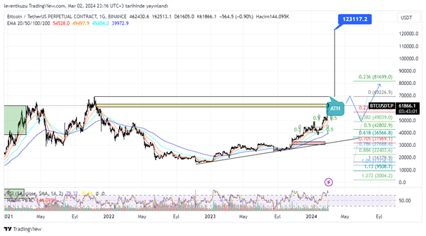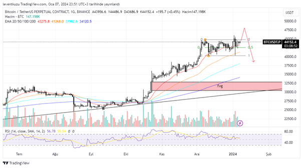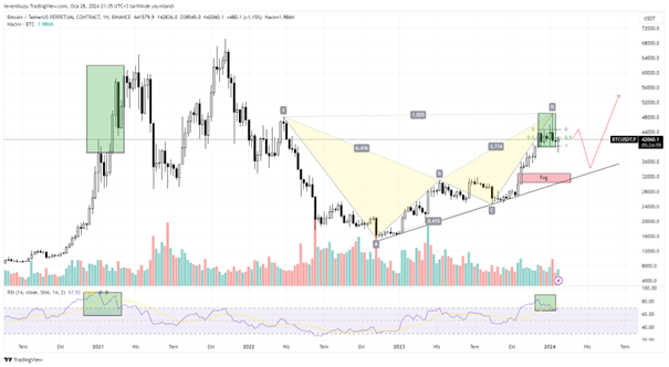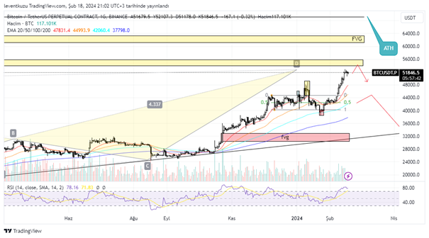 The price of BTC is close to all time high value. It is close to a semi-circular shape. After reaching there, we can observe a cup-handle shape. If this formation occurs, then we may expect retracement until $49.000s. After that, the price will most probable reach its new all-time high price at around $120,000.
