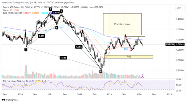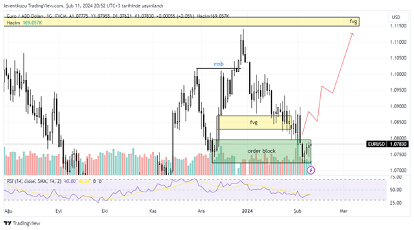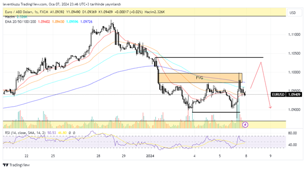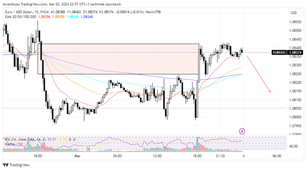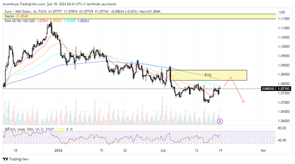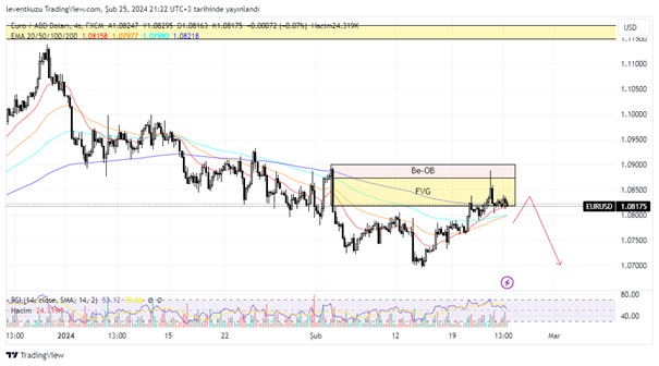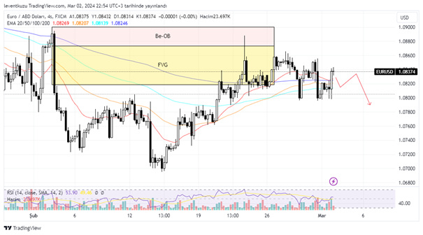 After the price reversed from bearish order block, it formed a range and moving within it. The range is between 1.08-1.086. On the other hand, LTF EMAs started to cross to the bearish side. 1.07 is the short term target on 4H chart.