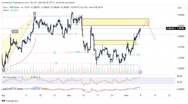 Pair price of EURUSD did exactly the same movement that we drew last week. The price was increasing through a channel and it was reversed from the daily resistance zone. Now, there are significant zones that can attract the pair price. Around 1.085 a FVG is available. As this is a 4H chart, this point of interest will be the closest target.