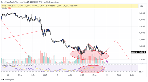 There is an increasing signal on the 15-minute chart. A bullish RSI divergence is present. Price will probably increase to the black dashed line close to 1.09. after that downward price movement continuation can occur, which is available on the HTF chart.